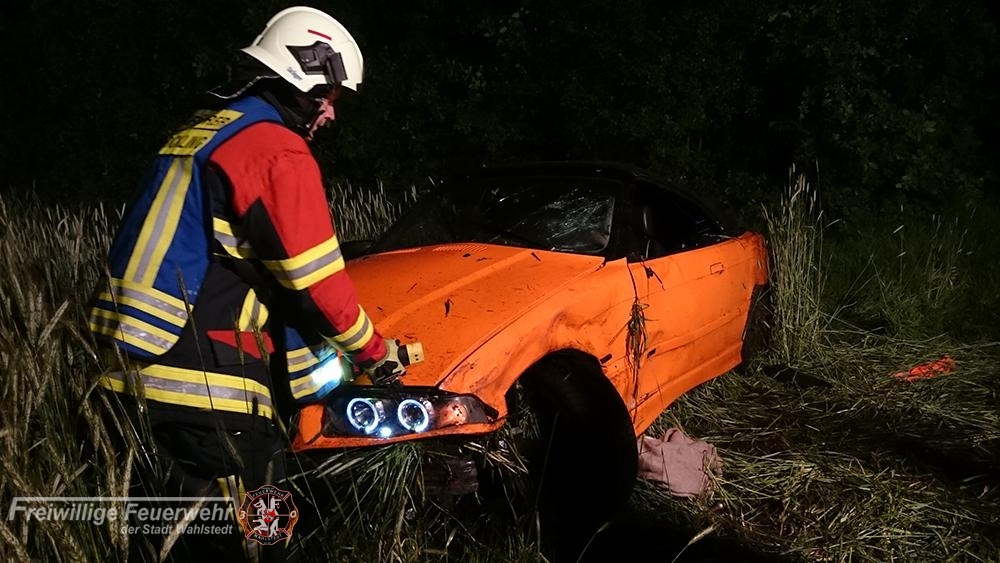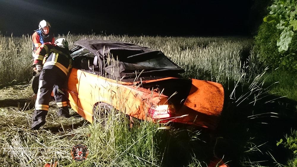 Aus bisher ungeklärter Ursache kam der Fahrer eines BMW Cabrios vom geraden Streckenverlauf ab und schleuderte in ein angrenzendes Feld. Das Fahrzeug wurde beim dem Unfall so stark beschädigt, dass der Fahrer es selbstständig nicht mehr verlassen konnte.