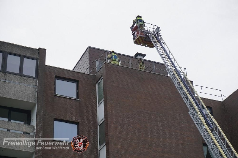 Aufgrund von Brandgeruch im 6. Obergeschoss eines Mehrfamlienhauses wurde von den Wohnungsinhabern die Feuerwehr gerufen. Während vor dem Gebäude ein Löschangriff, ein Atemschutztrupp sowie die Drehleiter in Stellung gingen, wurde das Gebäude und die Technikräume erkundet. Vermutlich kam es durch einen Kurzschluss zum Brandgeruch.
