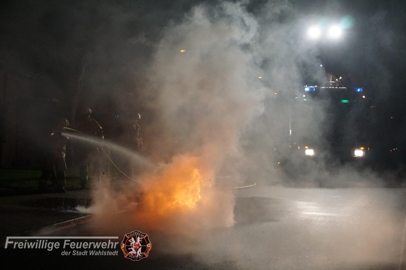 In der Nacht von Freitag auf Samstag bemerkten Anwohner einen brennenden Papiercontainer in der Nähe eines Mehrfamilienhauses, bereits vor dem Eintreffen der Feuerwehr konnte der Container auf die Straße gezogen werden.