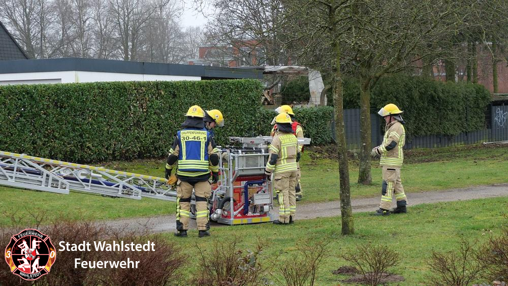 Über die Drehleiter wurde eine Person aus dem Haus transportiert und an den Rettungsdienst übergeben.