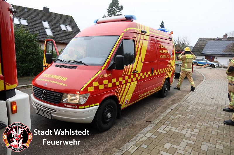 Bereits auf der Anfahrt bestätigten mehrere Anrufer das Lagebild und informierten die Kooperative Regionalleitstelle West, dass sich mindestens noch zwei Personen im Gebäude befinden. Aufgrund der neuen Informationen erhöhte der Einsatzleiter das Alarmierungsstichwort über "FEU G Y" auf "FEU 2 Y" und schlussendlich auf "FEU 3 Y".