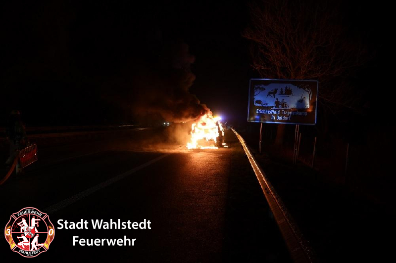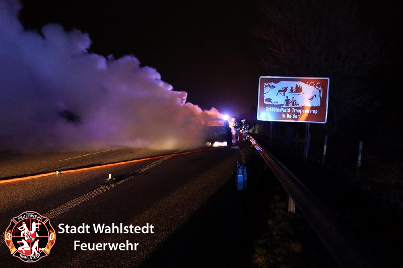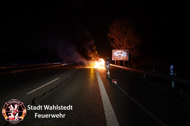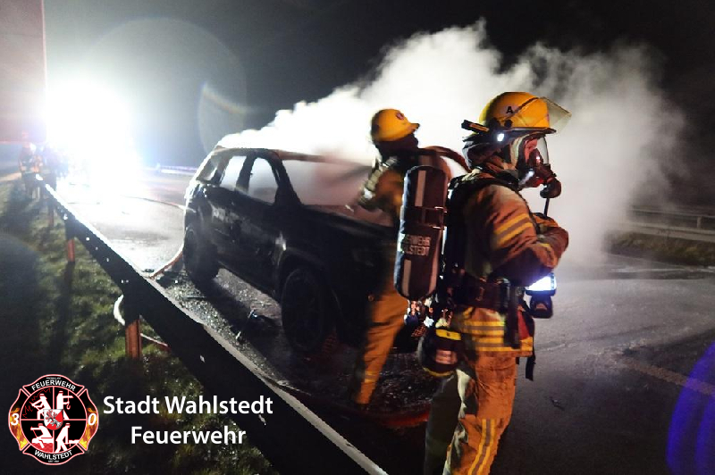 Der Kooperativen Regionalleitstelle West wurde um kurz vor 21 Uhr ein in Vollbrand stehender Personenkraftwagen auf der Bundesautobahn gemeldet.