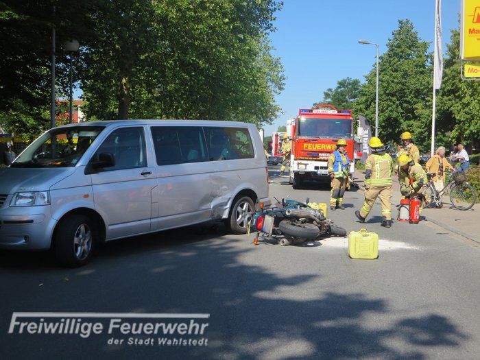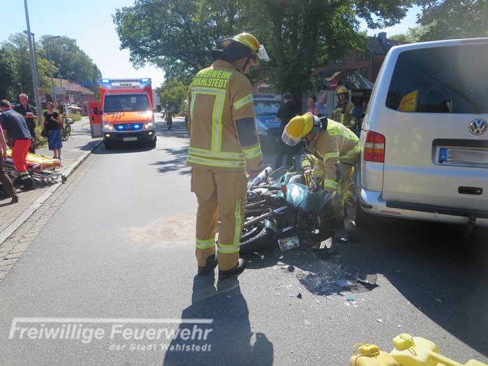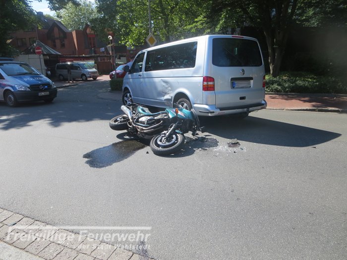 Auf der Neumünsterstraße kam es heute zu einem Verkehrsunfall zwischen einem Motorrad und einem VW Bus mit zwei Verletzten.