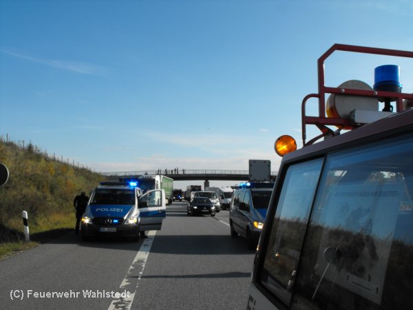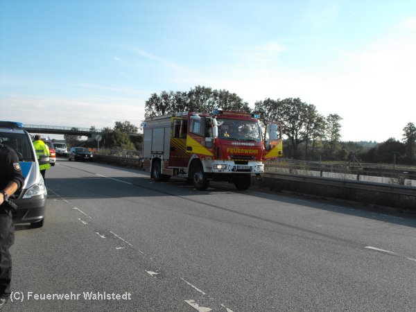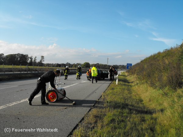 Nach einem Verkehrsunfall wurde die Feuerwehr Wahlstedt alamiert, um auslaufende Betriebsmittel aufzunehmen.