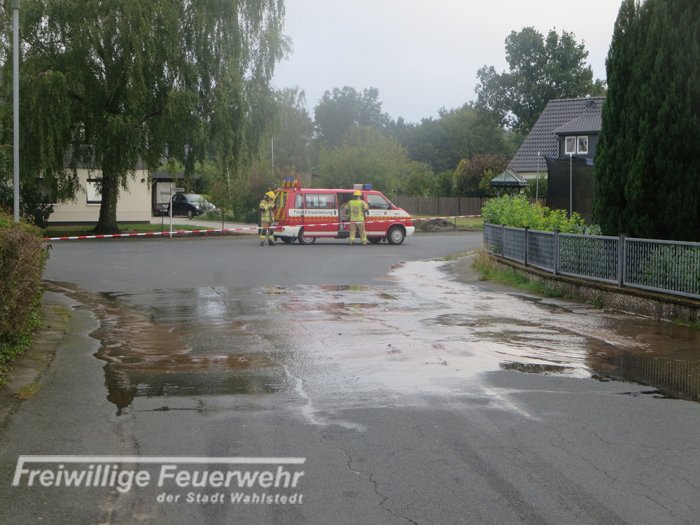 Die Feuerwehr sicherte die Einsatzstelle bis zum Eintreffen des Wasserversorgers ab.