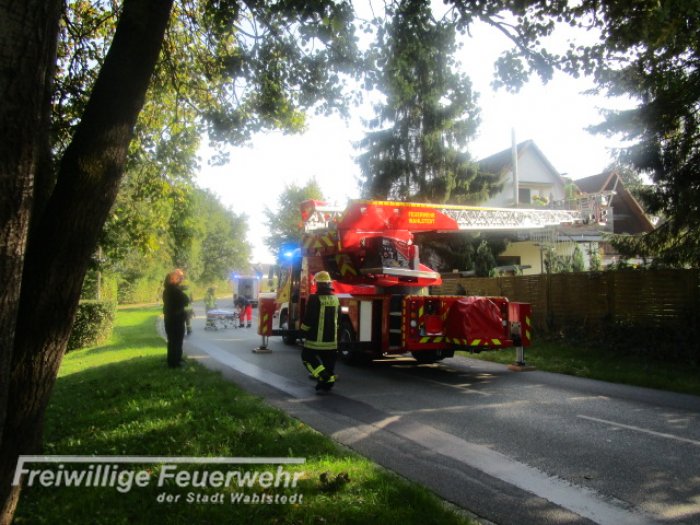 Auf Anforderung des Rettungsdienstes musste eine Person über die Drehleiter in den Rettungswagen transportiert werden. Dieser Einsatz war aufgrund der Erkrankung des Patienten erforderlich.