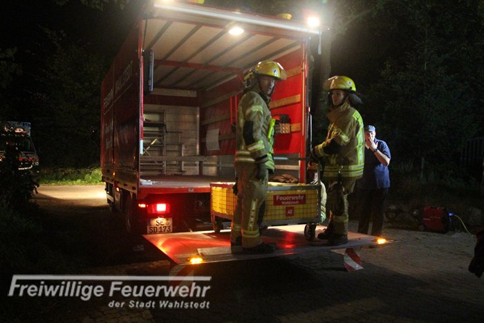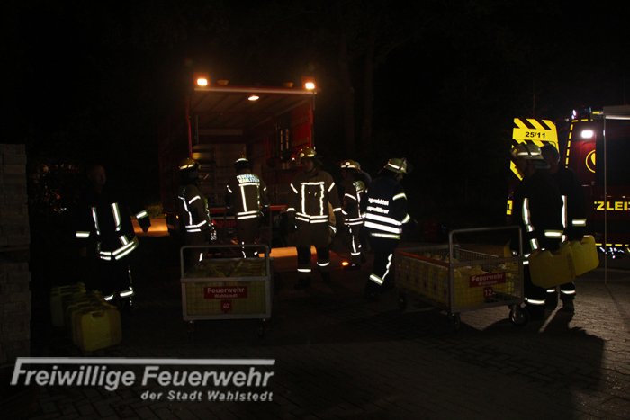 Durch die Feuerwehr Wahlstedt wurden 30 Kanister je 20 Liter Schaummittel ausgeteilt.