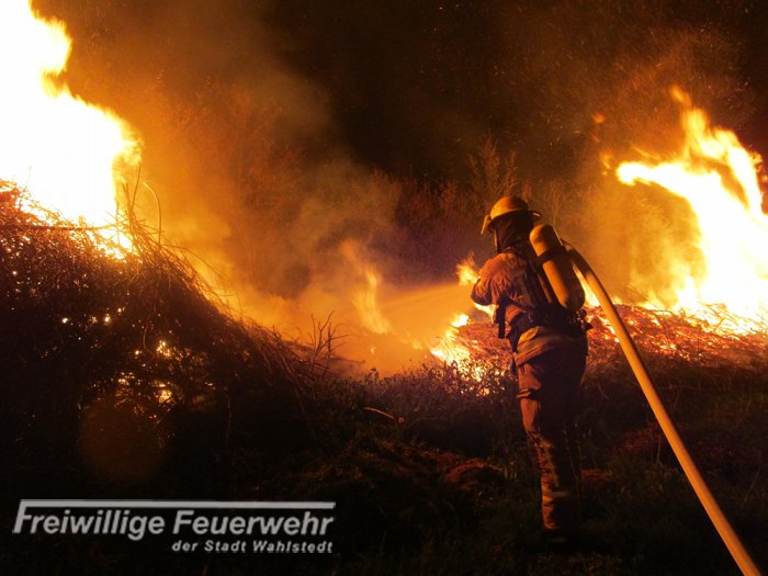 Da man den Feuerschein bereits von der K 73 aus erkennen konnte, wurde die Alarmstufe auf "FeuMi" erhöht.