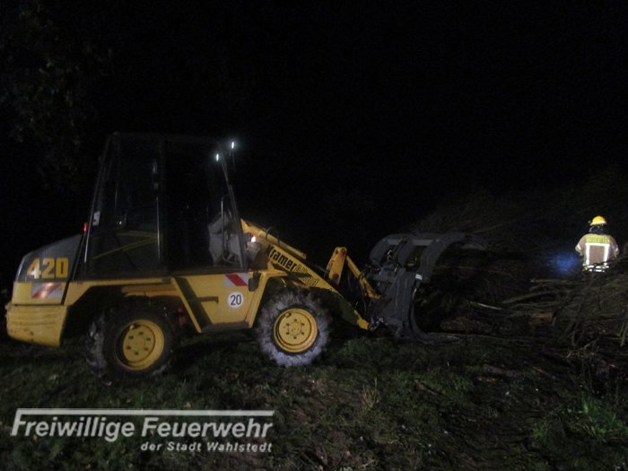 Mithilfe eines Radladers des Bauhofes wurde der Haufen auseinandergezogen und konnte so kontrolliert abgekühlt werden.