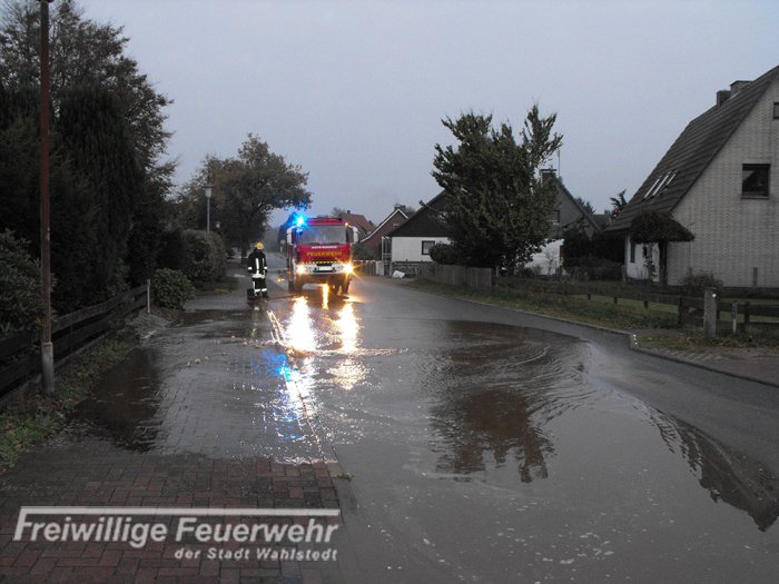 Noch während des laufenden Einsatzes wurde das Hilfeleistungslöschgruppenfahrzeug in die Alte Landstraße zu einem weiteren Wasserrohrbruch alarmiert. Die Bürger wurden über den Rohrbruch informiert und die Einsatzstelle abgesperrt.