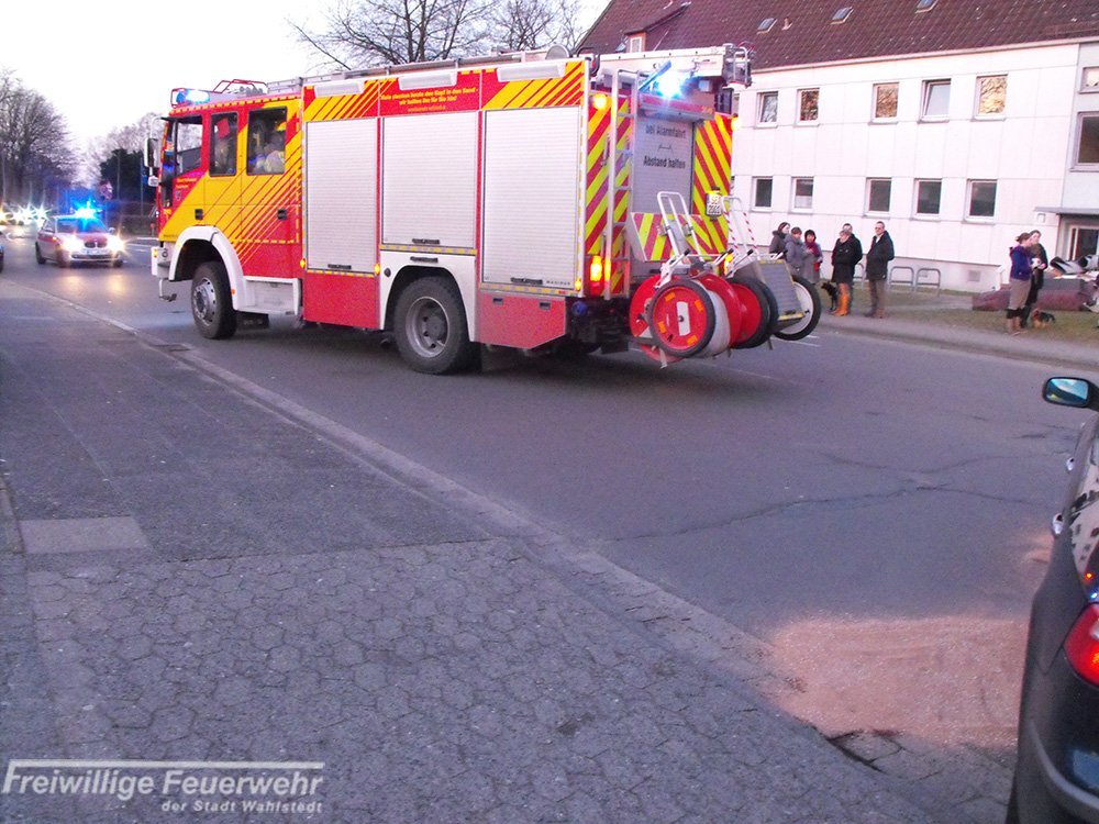 Nach einem Verkehrsunfall mit drei beteiligten Pkws liefen Betriebsmittel aus. Die Feuerwehr streute diese mit einem Kanister Ölbindemittel ab.