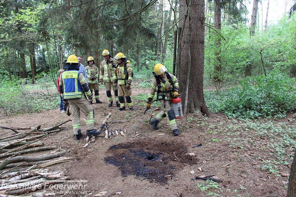 Die Reste eines Lagerfeuers wurden durch die Feuerwehr abgelöscht.