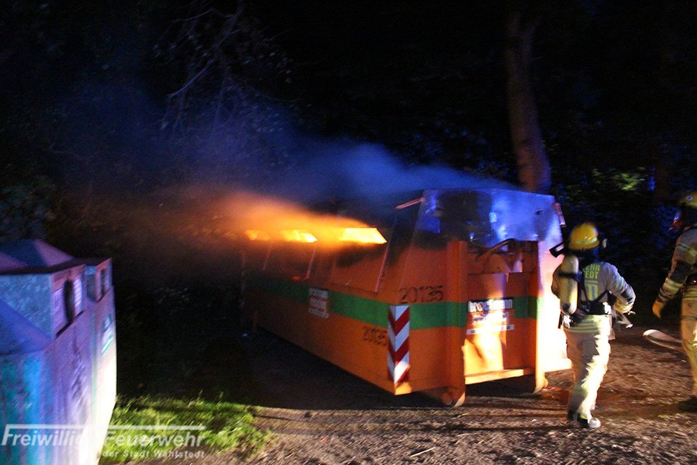 Es wurde ein 30m³ Altpapiercontainer von einem Ateschutztrupp gelöscht.