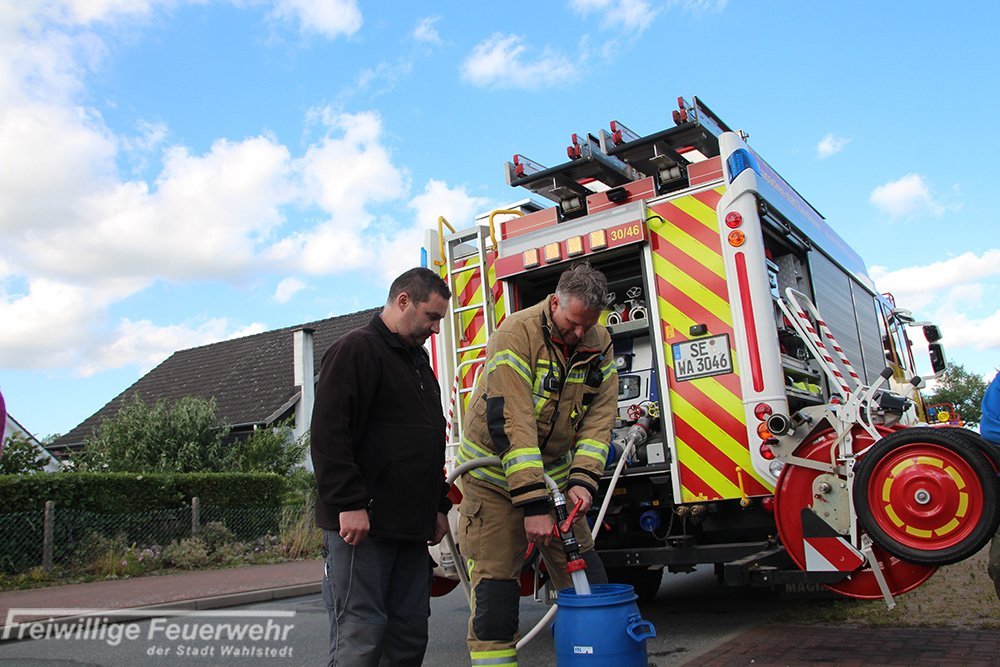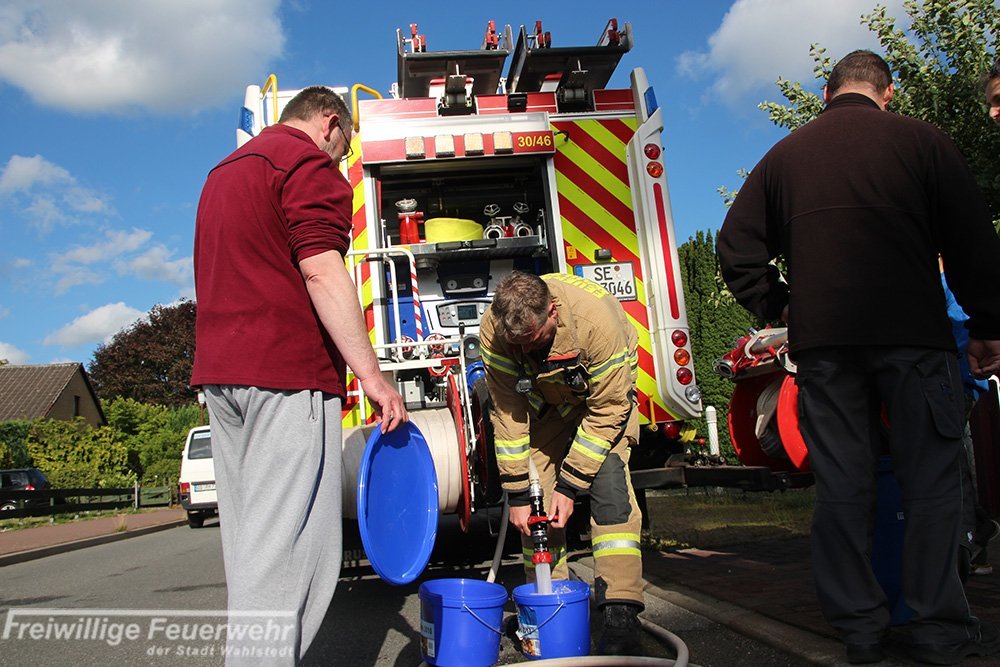 Die Feuerwehr verteilte über zwei Löschfahrzeuge an verschiedenen Stellen in den betroffenen Gebieten mehrere hundert Liter Brauchwasser.