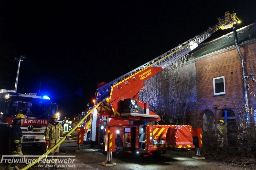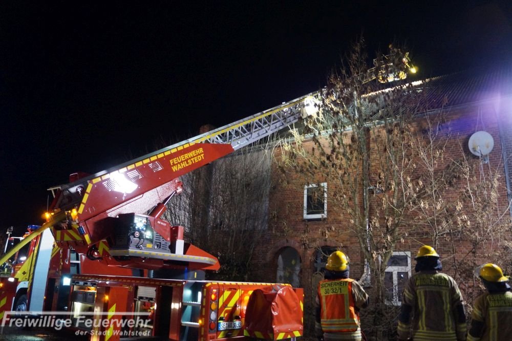 Zur Unterstützung der Drehleiter aus Bad Segeberg wurde gegen 20:53 Uhr der Drehleiterzug der Feuerwehr Wahlstedt zur überörtlichen Hilfeleistung alarmiert.