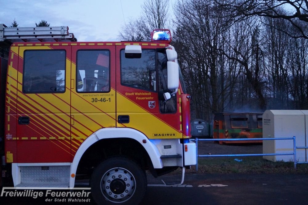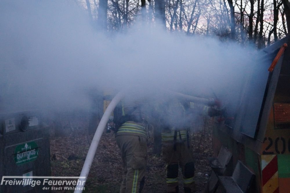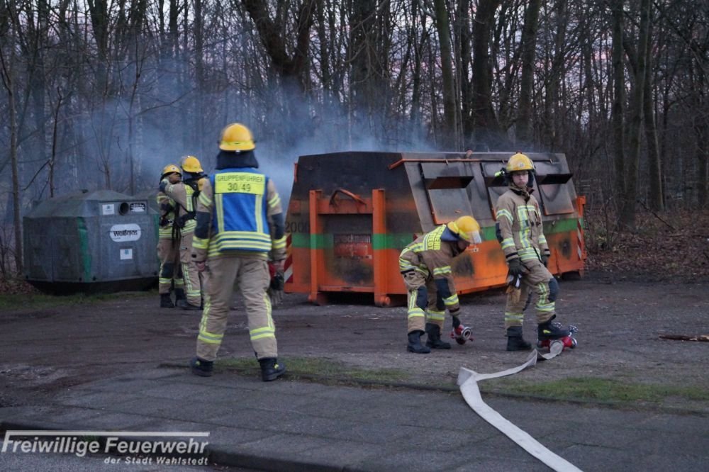 Der Container wurde durch einen Angriffstrupp unter Atemschutz gewaltsam geöffnet und mit einem B-Rohr abgelöscht.