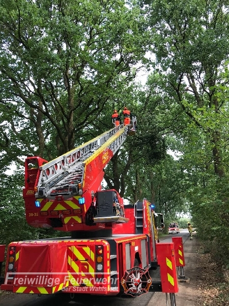 Ein größerer Ast drohte auf die Fahrbahn zu fallen. Die Gefahrenstelle wurde durch die Feuerwehr beseitigt.