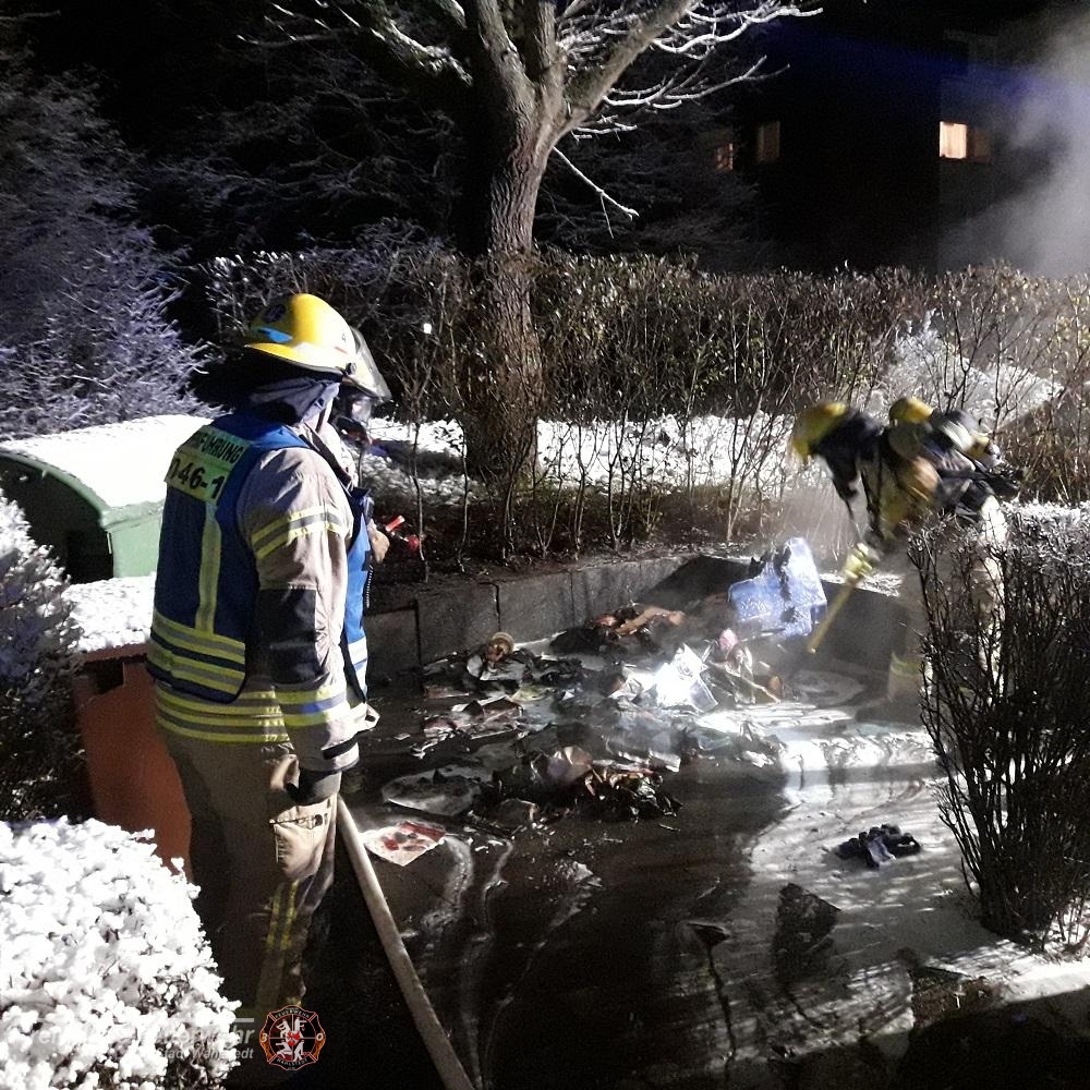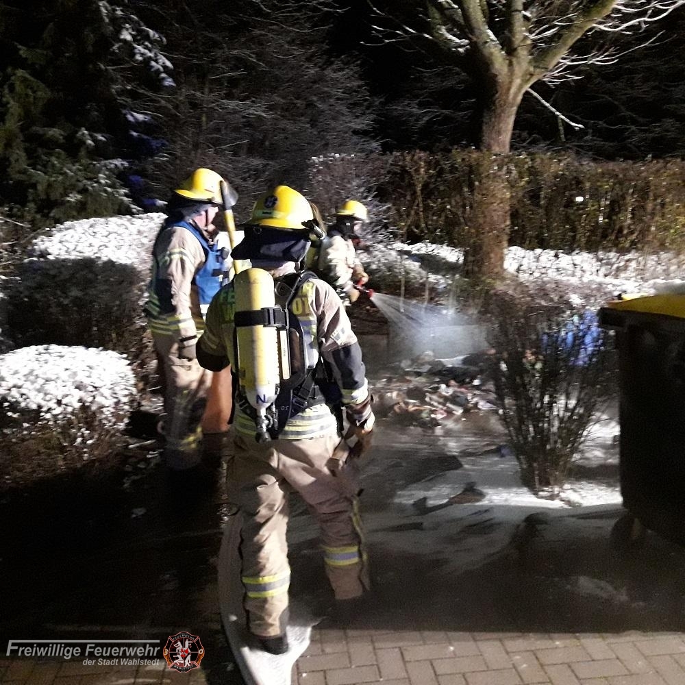 Ein brennender Altpapiercontainer wurde durch einen Trupp unter Atemschutz abgelöscht.