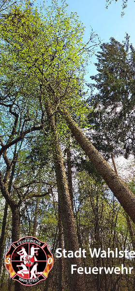 Vor Ort wurde in Rücksprache und Zusammenarbeit mit den Landesforsten ein Baum gefällt, welcher in einem anderen Baum hing und drohte auf einen Wanderweg zu fallen.