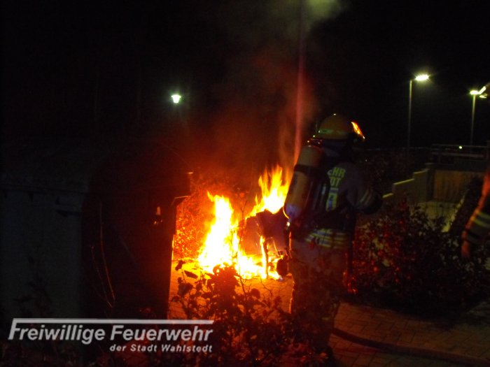 Es brannte ein Papiercontainer auf einem Müllcontainer-Sammelplatz. Dieser wurde von einem Atemschutztrupp gelöscht.