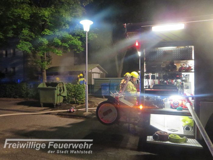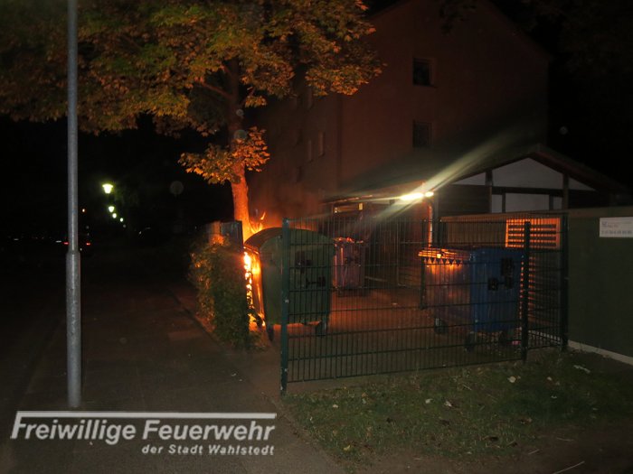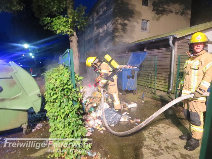 In der Bjerringbrostraße brannte ein Restmüllcontainer, dieser wurde von einem Feuerwehrmann unter Atemschutz gelöscht.
