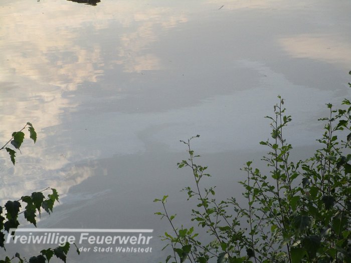 Ein aufmerksamer Passant bemerkte einen größeren Ölfilm in einem Regenrückhaltebecken und wählte den Notruf. Über einen straßenseitigen Einlauf kam es zu der Verunreinigung des Gewässers. Unter Hinzuziehung der Betreibers, Zweckverband Mittelzentrum, wurde um Amtshilfe der Feuerwehr gebeten.