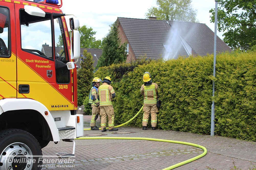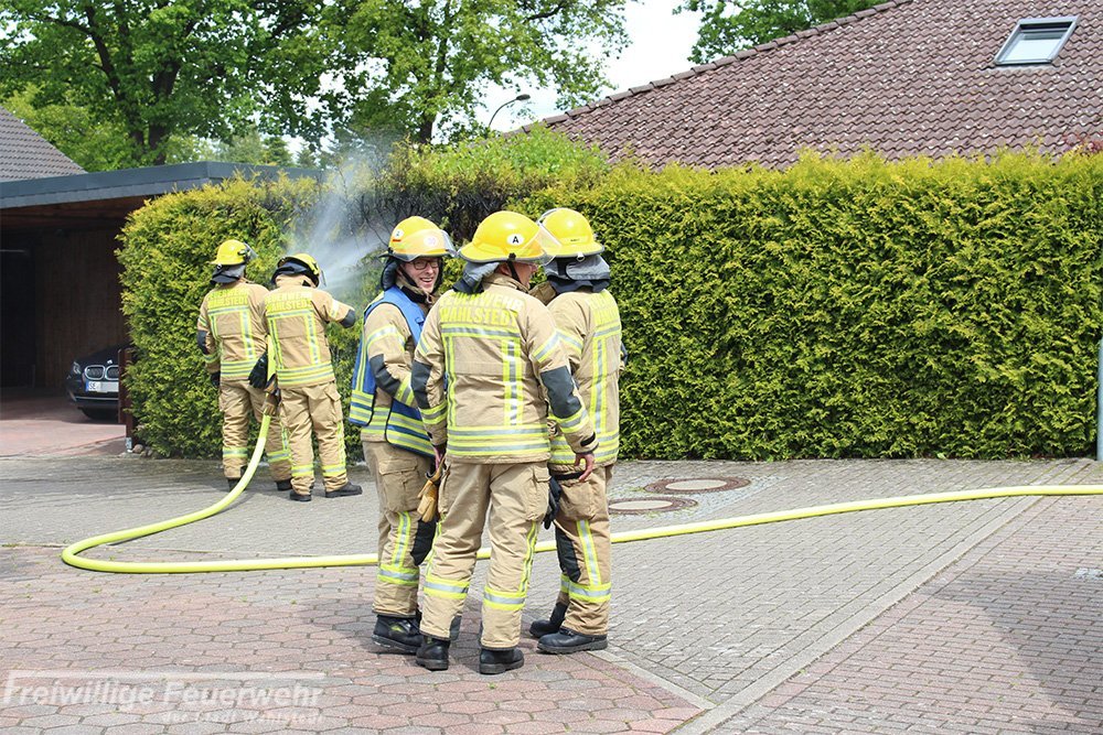 Aufgrund einer brennenden Hecke wurde am Montagnachmittag die Feuerwehr angefordert. Bei Eintreffen der Feuerwehr hatten die Eigentümer diese bereits gelöscht. Die Feuerwehr übernahm noch kleinere Nachlöscharbeiten und rückte wieder ein.