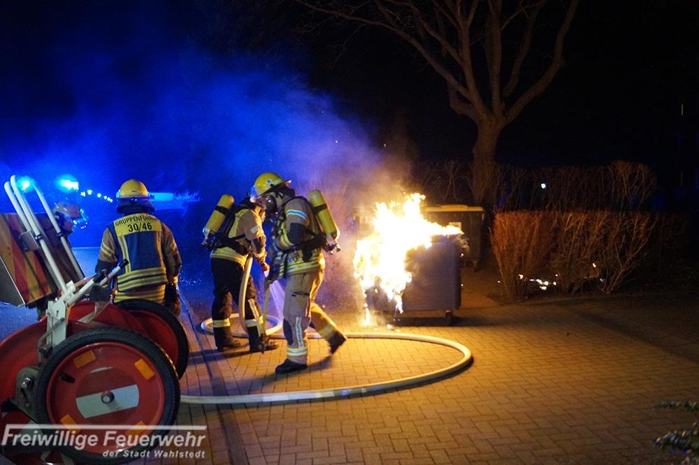 Gegen 23:57 Uhr wurden die Einsatzkräfte durch einen Anwohner in die Gorch-Fock-Straße zu einem brennenden Altpapiercontainer alarmiert. Ein Trupp unter Atemschutz löschte den Container sowie Teile der bewachsenen Umrandung mit ca. 580 Liter Wasser-/Schaum-Gemisch ab.