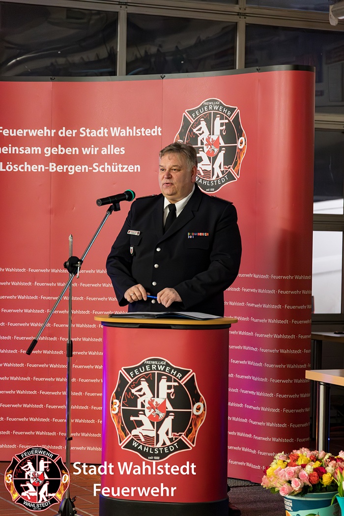 Am vergangenen Freitagabend, den 16.01.2026, fand die alljährliche Jahreshauptversammlung der Freiwilligen Feuerwehr der Stadt Wahlstedt in der Fahrzeughalle des Feuerwehrgerätehauses in der Dr.-Hermann-Lindrath-Straße statt.